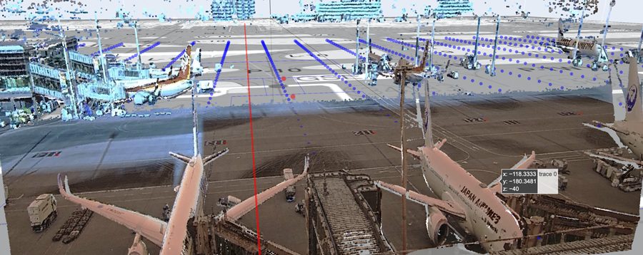 カメラの映像をもとに、空港制限区域をリアルタイムで3Dモデル化します。