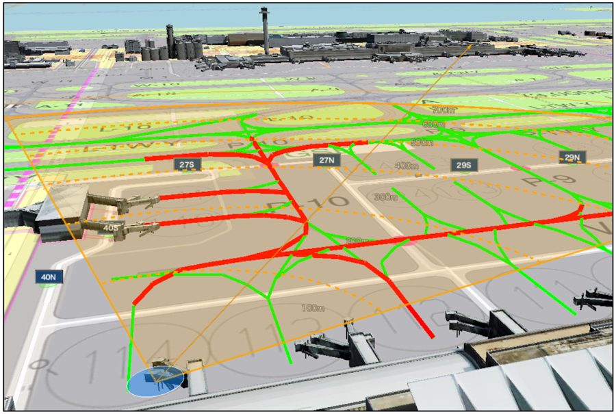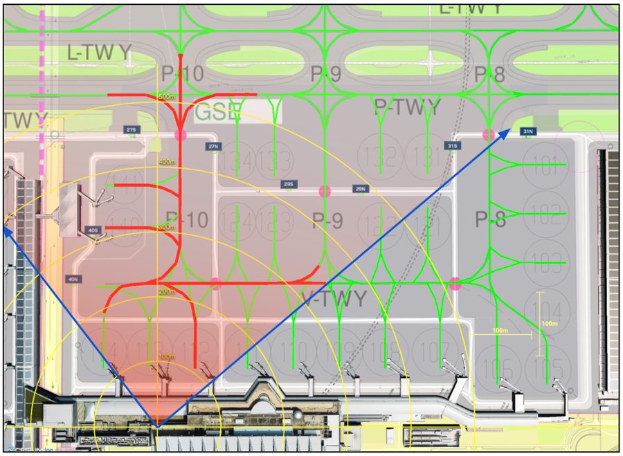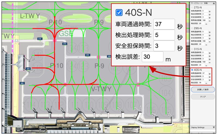 自動運転車両のブラストレーンやサービスレーンの通過時間を指定し、当該空港の監視すべき誘導路を自動で検出します。