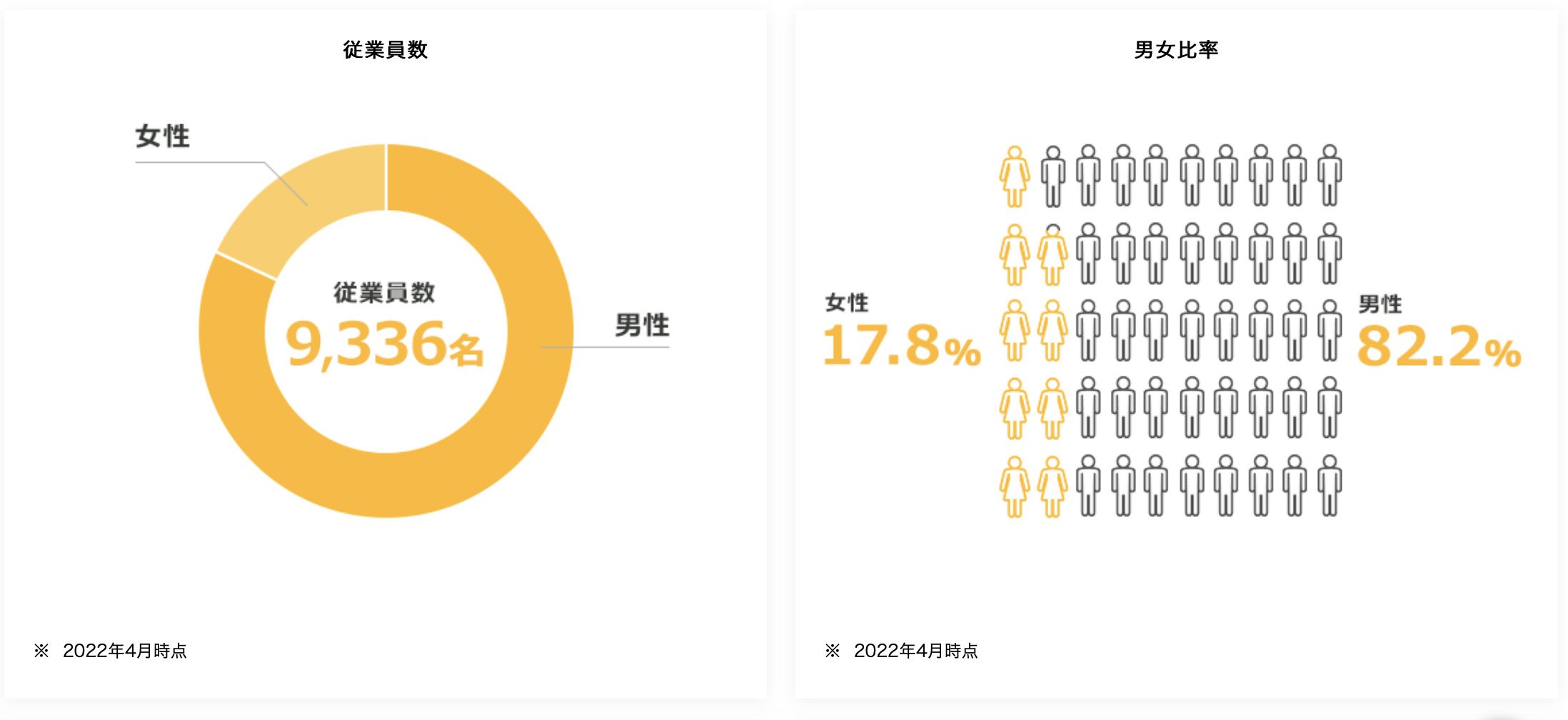 まだまだ男性が多い職場ですが、女性の割合も年々高くなっていて、性別に関係なくさまざまな現場で活躍しています。